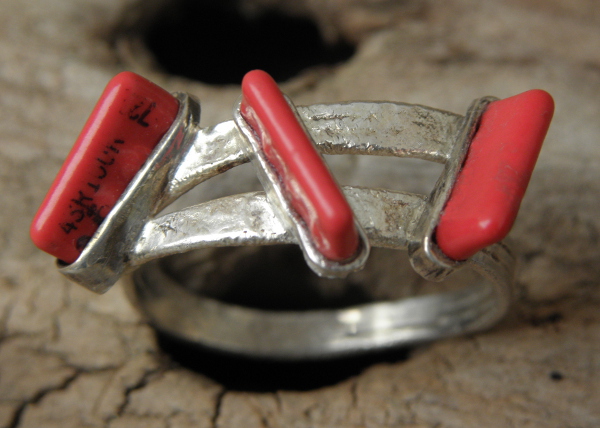 Unserer Recycling Ringe werden aus den "Abfallprodukten" von Auftragsarbeiten bzw. von Anfertigungen hergestellt. Das können Silberblechstücke sein, Drahtreste, oder zusammengeschmolzene Überreste von beidem.
