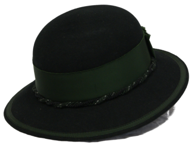 100% Schafwolle -schwarz-mit grünem Band - handgefertigt in Österreich - feste Qualität - mit wagenrad Krempe - silber-grüne Schnürl
